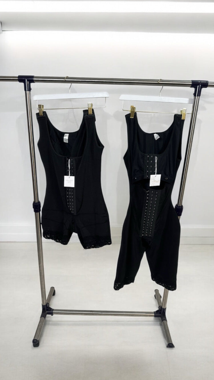 Finest compressed 4 hooks bodysuit to assist your recovery process after your liposuction, Brazilian Butt Lifting (BBL) , post partum, body sculpting, and hourglass contouring. Exclusively designed to provide support for the body/specific surgical area, by helping heal the muscle and tissue during the recovery period.